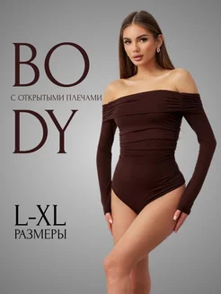 Боди вечернее с открытыми плечами и драпировкой
