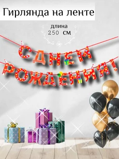 Гирлянда на ленте "С днём рождения", красная, 250 см
