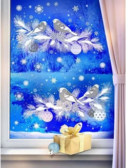 Новогодние наклейки интерьерные на окно, 2 листа А3