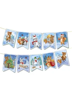 Гирлянда-флажки новогодняя ретро, двусторонняя, 280см
