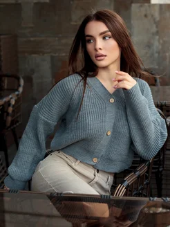 Кардиган укороченный вязаный оверсайз теплый на пуговицах