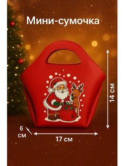 Новогодняя красная подарочная мини-сумочка с рисунком Санты