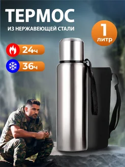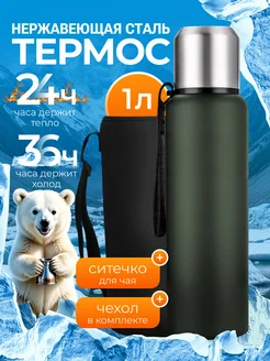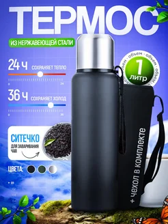 Термос 1 литр для чая металлический с кружкой и ситечком