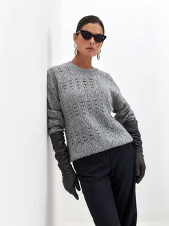 Свитер вязаный ажурный теплый тонкий осень-зима
