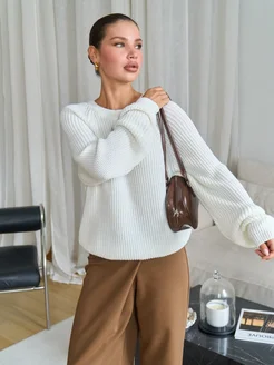 Кофта вязаная белая без горла рукав реглан оверсайз