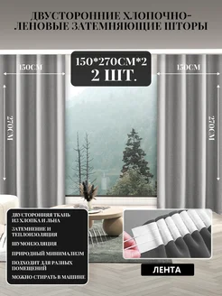 Шторы блэкаут льняные 150x270 2 шт для спальни и гостиной