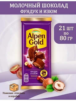Шоколад Альпен Гольд Изюм и Фундук, 21 шт 80 г