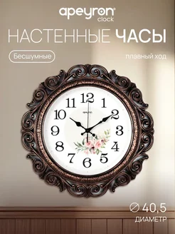 Часы настенные интерьерные бесшумные, 40.5см бронзовые