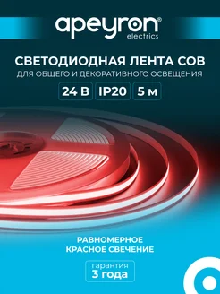 Светодиодная лента 24В 14Вт м, COB, 5м, красный