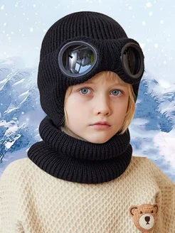 шапка ушанка для мальчика со снудом с очками зимней 3-7 года
