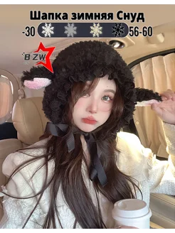 Шапка Овечка Черная с Завязкой