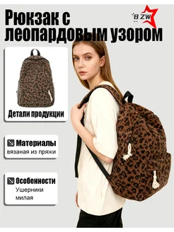 Школьный рюкзак из коричневого велюра с леопардовым узором