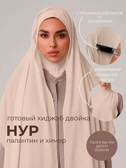 Хиджаб готовый с балаклавой манишкой с прорезью для очков