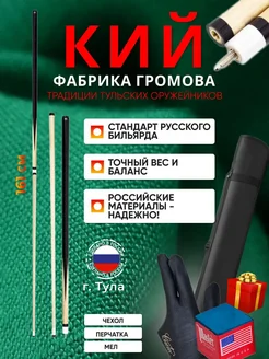 Кий для русского бильярда 160 см. двухсоставной в чехле