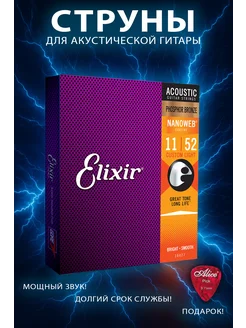 Струны для акустической гитары Elixir Phosphor Bronze 11-52