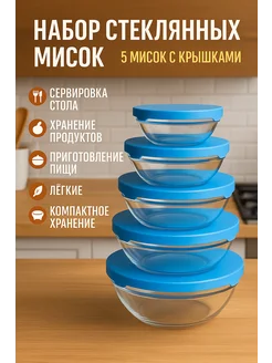 Набор стеклянных мисок с крышками
