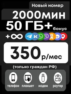 T2 SIM-карта 100 ГБ 3G 4G + безлимитный интернет на соц сети