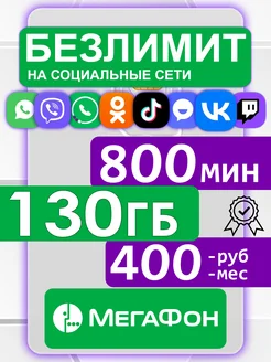 Мегафон SIM-карта 130ГБ 3G 4G+ безлимитный интернет