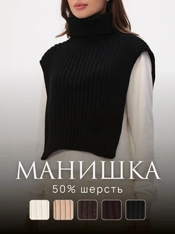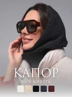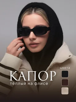 Капор вязаный зимний утепленный флисом капюшон-шапка
