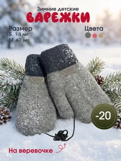 Варежки детские на веревке