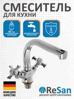 Смеситель для кухни с барашками крест, толстый плоский излив