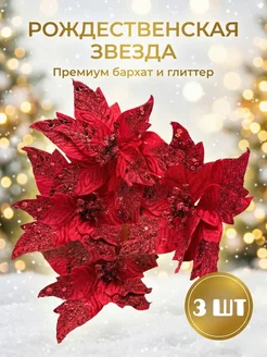 Новогоднее украшение на елку цветы красные 3шт