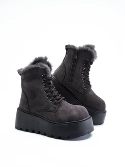 Ботинки зимние теплые на меху и высокой платформе на молнии