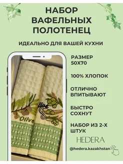 Набор кухонных вафельных полотенец с вышивкой Оливки