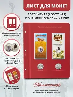 Лист для юбилейных монет Три богатыря и Винни-Пух