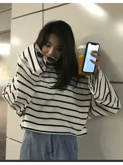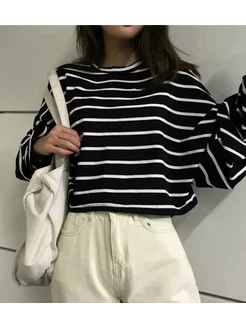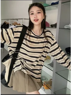 лонгслив оверсайз школьный в полоску корейский
