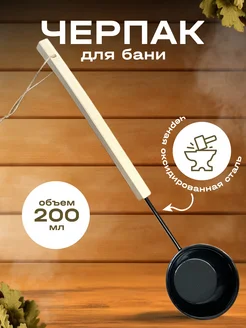 Ковш черпак для бани и сауны с деревянной ручкой черный