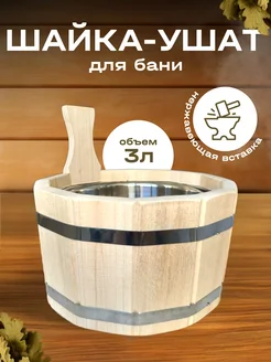 Шайка-ушат для бани и сауны с нержавеющей вставкой, 3 л