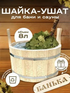 Шайка-ушат для бани с пластиковой вставкой и тиснением, 8л