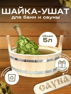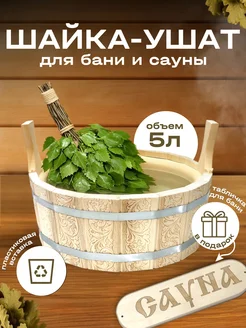 Шайка-ушат для бани и сауны с пластиковой вставкой, 5л
