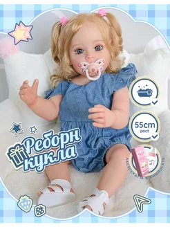 Кукла реборн 65 см, девочка, тканевое тело,голубые глаза