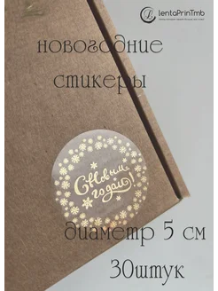 Набор стикеров "Новый год " прозрачные с золотом 5 см