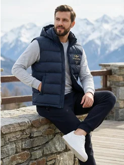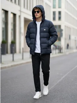 Куртка - пуховик зимний тёмно-синего цвета с капюшоном