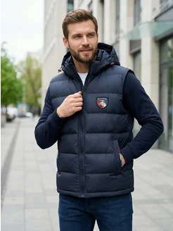 Куртка-пуховик с капюшоном темно-синяя, удлиненная