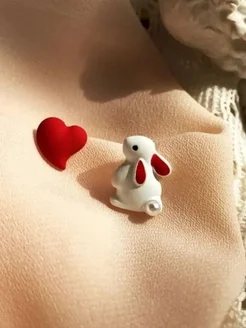Серьги-пусеты асимметричные Кролик и сердце