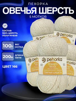 Пряжа Pehorka Овечья шерсть - 5 шт x 100 г, цвет 166