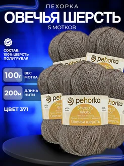 Пряжа Pehorka Овечья шерсть - 5 шт x 100 г, цвет 371