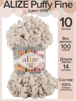 Пряжа петлями Ализе Puffy Fine - 10 шт x 100 г, цвет 599