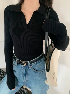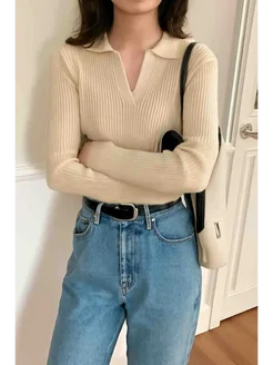 Лонгслив поло женское белое водолазка с v образным вырезом