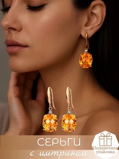 Серьги с цитрином Серёжки женские Бижутерия под золото