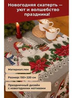 Скатерть новогодняя тканевая на стол 150 х220 см