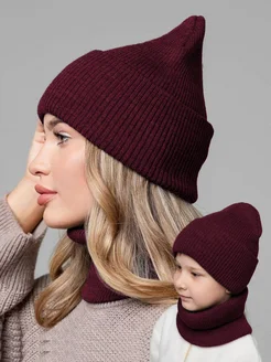 Шапка бини и снуд комплект осень зима