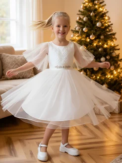 Платье для девочки нарядное новогоднее снежинка