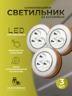 Светильник на батарейках светодиодный самоклеящийся 3 шт