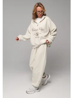 Спортивный костюм двойка с брюками палаццо и толстовкой