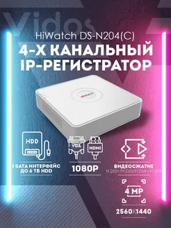 Видеорегистратор DS-N204(C),4 IP камеры до 4МП